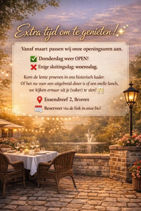 Reservaties kunnen enkel via de widget onderaan en telefonisch Tel 037755385